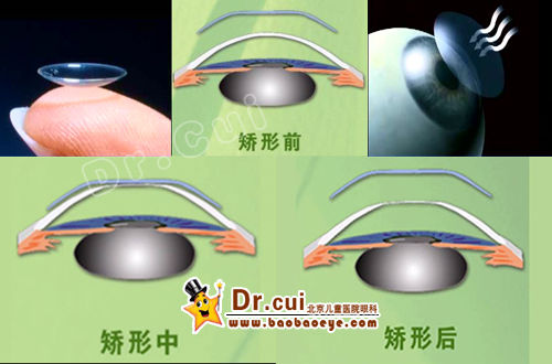 于是崔医生仔细看了孩子的验光报告和既往病史,很肯定地对这位妈妈说:“这位家长,您不要着急,您孩子目前近视发展是比较快,对于这个年龄段的儿童来说,能够有效控制近视发展的方法就只有角膜塑形镜了,这是一种特殊设计的硬质角膜接触镜,多数情况下只需每晚戴镜过夜7-9个小时,白天取下镜片后一天都会保持清晰的视力,它是通过对角膜的合理塑形来矫正视力的,并且可以最大限度地控制孩子近视的进展,而且这种方法相对比屈光手术而言是无创,可逆的,只要患者停戴一段时间角膜形态又会恢复先前的状态,18岁以后也可以考虑做屈光手术,彻底摘掉眼镜。”
