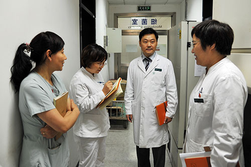 此次查房分为认可工作方案汇报讨论和现场考察办公两部分。会上谢向辉副院长首先表达了院领导对检验中心实验室认可工作的高度重视,并提出因新医技楼的工程方案调整和工期的扩大可能导致工程延期,因此提出在现有条件下进行实验室认可,希望全院相关部门给予帮助和支持。会上检验中心副主任王艳及各专业组组长代表检验中心在总结科室认可前期工作的同时,提出未来8个月的认可计划及目前面临的准则版本变更和各实验室空间及流程改造的问题。会上大家就各专业组的流程改造进行了友好热烈的讨论。赵成松院长助理和吕忠礼主任、丁昌红副主任等均表示积极支持检验中心实验室认可工作。运营保障处左正中处长当时叫来工作人员参与查房。讨论会后谢院长带领大家分别现场考察了检验中心老楼一层的病房化验室、二层门诊化验室、细菌室,门诊楼三层生化室、六层血清室和七层内分泌室,就流程改造中具体问题现场讨论提出解决方案。谢向辉副院长指示流程改造一定要开动脑筋、尽可能节约成本,将改造对临床工作影响降到最低。参与查房的各位科室主任也积极献计献策,并在流程改造中局部改造和提供临时周转用房方面给与大力支持。