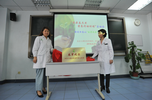 4月23日下午,我院肾病科联合营养膳食科召开了“爱在春天里—营养行动计划”启动会暨北京儿童医院透析患儿“春芽之家”成立揭牌仪式。
