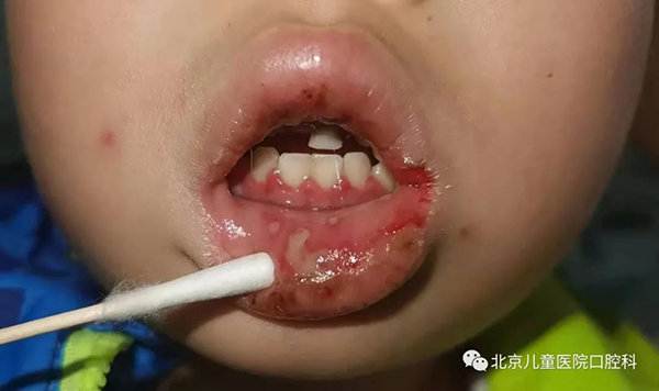 这种口腔粘膜病,叫原发性疱疹性口炎,最常见的由I型单纯疱疹病毒引起的,多表现为一种较严重的龈口炎——急性疱疹性龈口炎。患儿经常因发热、不吃饭、哭闹不安就诊。