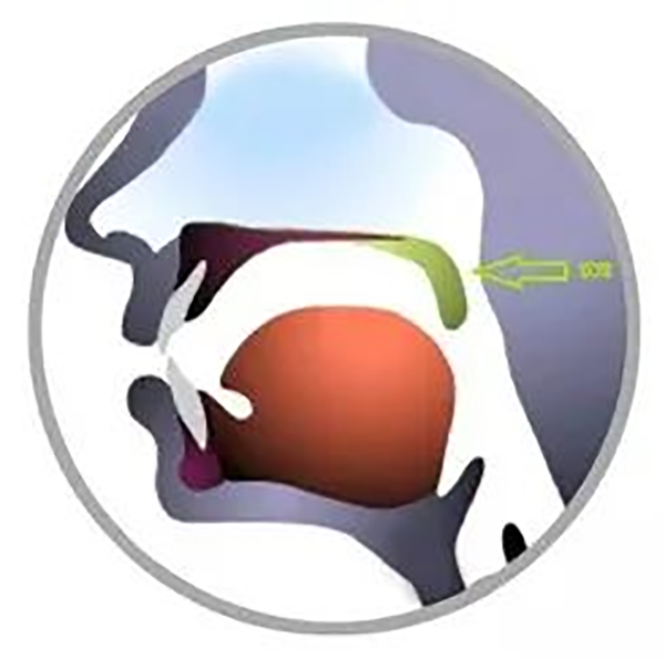 正常的软腭位置在 “上膛” 的后半部分,它的形状类似一个 “小舌头”。软腭最重要的功能是:它上抬时,能将口腔与鼻腔分隔开,在说话时控制气流,使气流经过口腔而不至于从鼻腔溜走。这个功能称之为腭咽闭合功能。