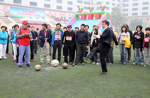 10月19日上午,我院在月坛体育场隆重召开了“2014年北京儿童医院秋季职工运动会”。北京市总工会政法卫生文化工会主席原在会,北京市卫生和计划生育委员会副主任、工会主席李彦梅,北京市医院管理局副局长边宝生及部分院领导参加开幕式。曾骐副院长主持开幕式,倪鑫院长致辞并祝运动会取得圆满成功。