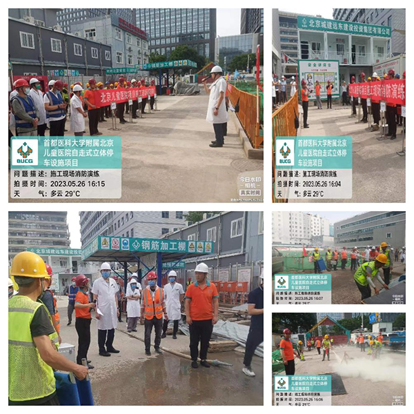 为进一步加强施工现场安全工作,在“人人讲安全,个个会应急”的主题思想指导下,提高现场施工人员的消防安全意识和施工现场“四个能力”的建设,5月26日下午16时,北京儿童医院运营保障处组织自走式立体停车设施项目开展施工现场消防应急演练活动。运营保障处全体人员、院内其他施工单位消防负责人等参加了此次消防应急演练。