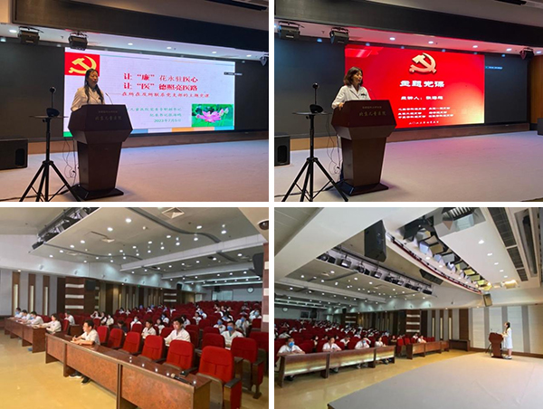 会上,张海鸥以《让“廉”花永驻医心 让“医”德照亮医路》为题讲党课,主要从把好新时代“廉”脉、会诊新征程“行”风、透析新发展“质”效三个方面阐述了医护人员坚持廉洁奉公方能树立新风尚、坚持廉洁行医方能扶正祛邪、坚持廉洁创新方能行稳致远的从医要求和服务理念。