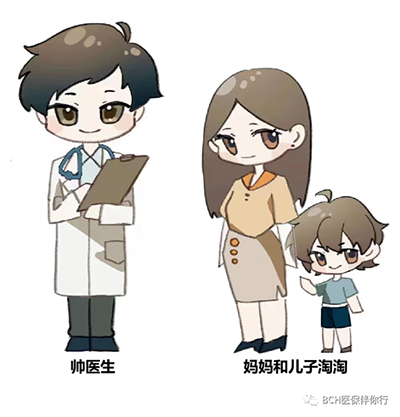 “帅医生”、“妈妈”和儿子“淘淘”,三个可爱的漫画人物形象,在北京儿童医院医保办公室创办的微信公众号“BCH医保伴你行”中开课啦!通过场景再现和风趣对话,为大家讲解医保政策,普及医保知识。