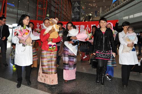 来自西藏的5名唇腭裂患儿在医务人员的护送下来京接受治疗。这是由北京市援藏医疗队组织、我院承接救治的又一批西藏患儿。我院赵成松院长助理、党办陈萍主任、耳鼻咽喉头颈外科张杰主任、保健办刘小梅主任等一行到机场迎接。