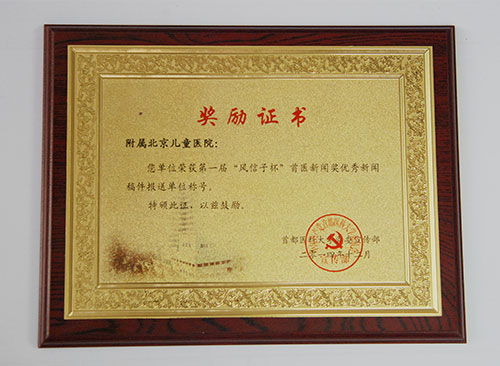 1月21日,首都医科大学2014宣传思想工作年会暨职业道德建设学术研讨会召开,会议为首届“风信子杯”首医新闻奖获奖者举行了颁奖仪式,我院获得首届 “风信子杯”首医新闻奖优秀新闻稿件报送单位称号,宣传中心余易安、卢曦撰写的《患儿被扎十二根钢针 专家团队成功施救》获得通讯类优秀新闻作品奖。