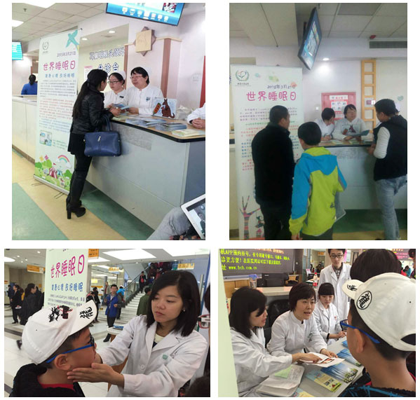 科室的十余位医护人员放弃周六的休息时间,来院进行睡眠日义务咨询。尤其是门诊的王蓬鹏、王桂香两位医生在保证当日门诊的工作下,还赶来为咨询的患儿义诊检查。在两个小时的活动中共发放宣传手册百余份,并一一向家长详细解答了 “孩子睡觉打呼噜是睡得香吗?”“孩子为什么会打呼噜?”“如果不治疗,有什么危害?”等诸多问题。通过此次活动,引起了家长们对孩子的睡眠健康问题的关注。