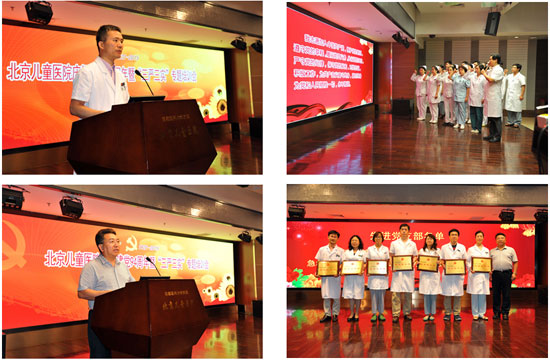 王天有书记宣读了《关于表彰先进党支部、优秀共产党员、优秀党务工作者的决定》。2014年以来,院党委开展了党的群众路线、三严三实等一系列主题实践活动,涌现出了一批先进集体和优秀个人。院党委决定对血液党支部等7个先进党支部、贾立群等31名优秀共产党员、丁枭伟等5名优秀党务工作者予以表彰,号召党支部和广大党员向他们学习。院领导和党委委员为先进党支部、优秀共产党员和优秀党务工作者颁发了奖牌和证书。先进党支部代表、血液党支部书记吴润晖和优秀党员代表、重症医学科主任钱素云分别上台发言。