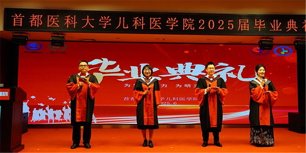 2025年6月25日下午,首都医科大学儿科医学院2025届毕业典礼于北京儿童医院门诊楼12层报告厅盛大举行。国家儿童医学中心主任、首都医科大学附属北京儿童医院党委副书记、院长、首都医科大学儿科医学院院长、儿科学院院长、儿科医学院学位委员会主席倪鑫,首都医科大学附属北京儿童医院党委书记、儿科医学院学位委员会副主席张国君,首都医科大学附属北京儿童医院副院长王爱华,首都医科大学附属北京儿童医院副院长、儿科学院副院长赵成松,原党委书记王天有,儿科医学院学位委员会副主席李巍,党委委员、儿内科基地负责人、重症医学科首席专家钱素云,教育处处长焦莉平、内科教研室主任郭琰、儿外科教研室副主任李樱子等领导及嘉宾莅临典礼。研究生导师、临床教师代表、学生家长及在读学生代表等200余人共同见证了这一庄严时刻。