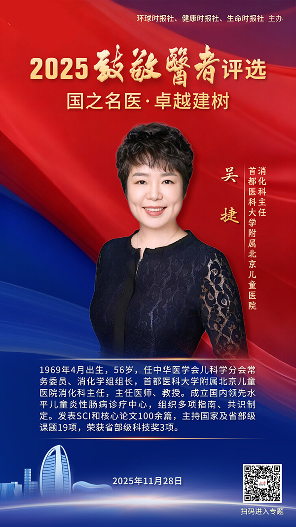 在患儿和家长心中,她是总愿为他们“加号”的暖心医生;在全国儿科同行眼中,她是儿童消化系统领域的长期耕耘者,更是基层医生成长的“云端引路人”。首都医科大学附属北京儿童医院的吴捷主任,用行动诠释了一名好医生的专业与温度——既以精湛医术治愈疾病,亦以仁爱之心温暖心灵。