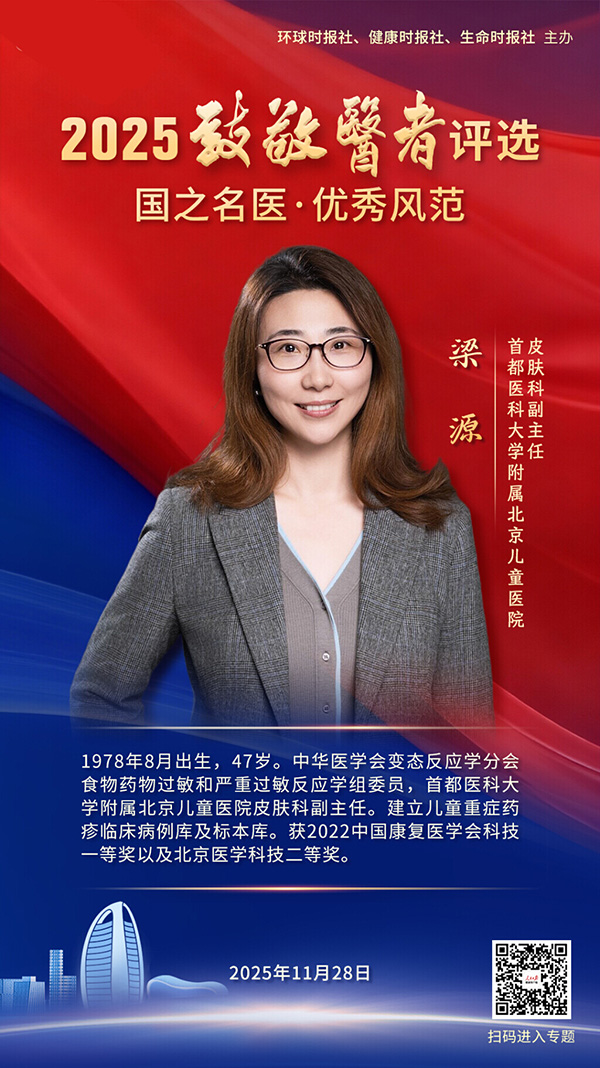 当梁源看到一个个宝妈,在她苦口婆心的劝告下,打消了食物过敏的顾虑、外用激素的恐惧,规范的治疗湿疹后,终于能带着孩子睡个整觉后消失的黑眼圈、让孩子体重追涨上来时开心的笑脸,她觉得一切都是值得的;当梁源看到重症药疹的孩子,由于全身皮肤剥脱、角膜剥脱而面临死亡和失明风险时,经过3天的抢救治疗后终于脱离危险,与孩子妈妈相拥而泣的瞬间,让她觉得一切都是值得的;当她看到一个个患有斑秃、白癜风、青春痘的小朋友经过治疗,能摆脱自卑和病耻感重返心爱的校园、重新站上第一辩手的席位时,她觉得一切都是值得的。梁源的恩师马琳教授常说“医生多受一份累,孩子就少受一份罪”,梁源深以为然:“孩子的健康快乐不仅是妈妈的心愿,也是我最大的幸福,能成为患儿和家长坚实的‘医’靠,再忙再累也值得!”