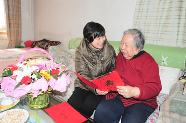 我院团委书记胡波、老干部处处长吴冬芬、志愿服务工作部主任李宁和青年志愿者们走访慰问了郭岭芝、于爱华、李文革、刘贝珍4名退休老干部,为他们庆祝80和85岁生日。另外,一行人还看望了住在医院家属宿舍的7名退休老同志。