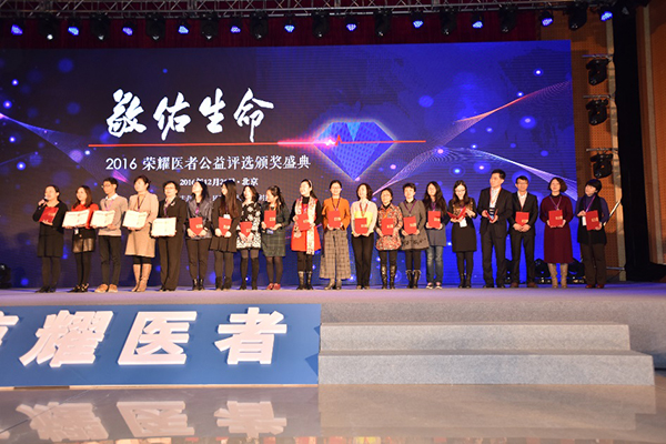 12月26日下午,由环球时报、生命时报共同主办的“敬佑生命•2016荣耀医者”公益评选颁奖盛典在京举行。北京儿童医院党委书记、血液肿瘤中心王天有教授荣获“科普影响力奖”,呼吸科申昆玲教授荣获“年度荣耀医者奖”,重症医学科钱素云教授荣获“专科精英奖之关爱妇婴奖”,中医科闫慧敏教授荣获“中华医药贡献奖”,血液肿瘤中心主管护师王春立荣获“美丽天使奖”,北京儿童医院荣获积极贡献奖。