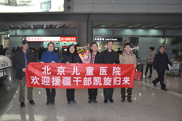 2016年12月31日晚上10点,北京儿童医院援疆干部秦强同志在完成新疆和田地区人民医院一年的援助任务后顺利返京。市卫生计生委副主任李彦梅、组织人事处调研员胡兰、市医院管理局组织与人力资源处副调研员李方亮,北京儿童医院党委副书记、纪委书记丁枭伟带领党办和呼吸科的同志到机场迎接。