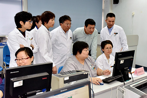 演练中,王天有书记以患者家属的身份体验了信息系统成功切换后从挂号、看病、划价、缴费、到入院、交费、出院等全部就诊流程,倪鑫院长带领与会院领导就现场可供完善的问题逐一进行了指示,并责令相关部门一一予以落实。