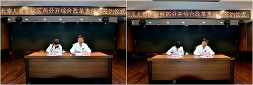 最后,倪院长与科室负责人代表签署《北京儿童医院医药分开综合改革责任书》,各科室负责人将与本科室职工签署责任书,细化责任,层层落实,步步推进,确保医药分开综合改革顺利进行。