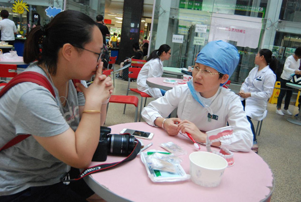 在互动环节,口腔科多位医师手把手教小朋友和家长如何正确刷牙和使用牙线,在场的小朋友对牙模型表现出极大的兴趣,认真为模型“刷牙”,家长也带着问题学习刷牙。本次活动普及口腔知识,得到了家长和小朋友的热烈欢迎。此次科普活动有多家媒体参与直播,微博点击量当日已达1.9万。