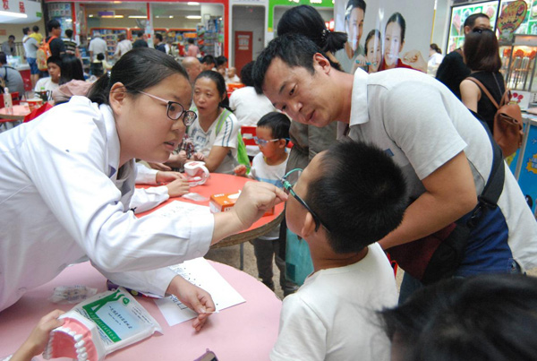 9月20日上午9点到11点半,口腔科在门诊楼地下一层举办了“爱牙日”口腔义诊活动,口腔科副主任于国霞、主任医师陈卓、副主任医师张志苓等5位医生参加了此次义诊活动。本次活动的主旨是进行口腔健康检查,对儿童及家长普及口腔科普知识,传递口腔健康理念。此次口腔义诊活动受到儿童及家长的广泛关注和热烈欢迎,活动尚未开始,已经有儿童及家长等待义诊的开始。