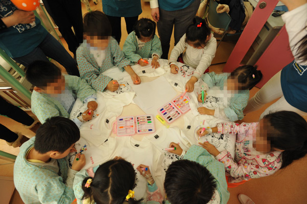 志愿者首先带领小朋友们进行文化衫的彩绘。小朋友们在志愿者的引导下,纷纷拿起画笔,将自己心中喜爱的卡通人物绘画在衣服上,不一会,一件件五彩缤纷的衣服诞生在小朋友们手中。