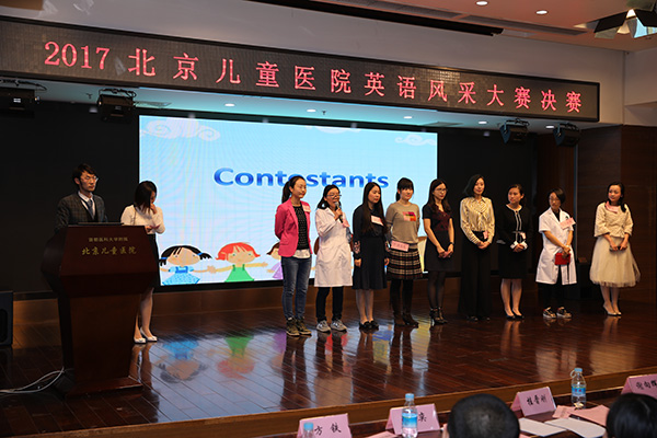2017年12月28日下午,北京儿童医院第十三届英语风采大赛在门诊楼12层报告厅成功举办。来自临床、医技和行政等处室的34名选手报名参赛,10名选手脱颖而出进入决赛。王天有书记、葛文彤副院长、谢向辉副院长亲临现场,九位不同科室骨干担任大赛评委。