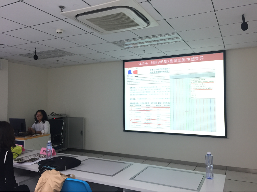 论坛的第二部分由医学遗传中心博士研究生李慧敏汇报其博士期间的课题,她首先对胸主动脉瘤的临床表现、致病机制、已知致病基因进行了介绍,接着对在患者中检测到的LOXL4基因进行了文献调研方面的讲解,最后详细的列出了其研究方法和研究路线。汇报结束后,陈晓丽教授和郝婵娟主任对其课题进行了悉心指导,并提出中肯建议。