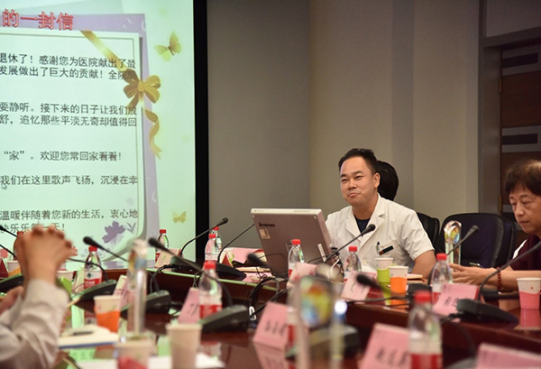 紧接着人力资源处处长张洁为大家介绍并播放了题为“无私奉献数十载,慈心洒爱毕生春”的视频短片,每一幅画面都展示了大家最美的工作状态和最精彩的瞬间,回眸往昔的工作场景新退休同志们深感儿童医院大家庭的温暖,深受感动。
