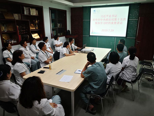 根据北京市医管中心要求,在院党委的统一安排部署下,中医支部于2019年7月29日在中医科会议室召开党员会议,共同学习习近平总书记在中央政治局第十五次集体学习时的重要讲话精神。