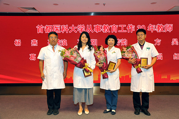 院长倪鑫教授,党委书记王天有教授,党委副书记、纪委书记丁枭伟,副院长穆毅,总会计师杜敬毅、工会主席王爱华等同志为分别为获奖教师颁发首都医科大学优秀教育教学奖、从事30年教学工作老师、儿科医学院优秀导师奖、儿科医学院优秀教师奖、住院医师规范化培训优秀指导教师奖、优秀护理教师奖,大会对以上做出卓越贡献的老师进行了表彰。