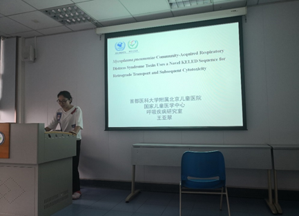 本次研究生论坛由北京市儿科研究所呼吸疾病研究室承办,主要和大家分享了呼吸疾病研究室在儿童肺炎支原体肺炎及儿童结核病研究方面的部分工作,并介绍了相关课题的研究思路,希望能在课题设计方面对与会者有所帮助。本次研究生论坛分为两部分,第一部分由呼吸疾病研究室博士研究生王亚翠为大家讲解一篇关于肺炎支原体致病机制的文献,该文献主要介绍了肺炎支原体在体内致病所经过的通路,通过阻断通路而达到治疗的目的。