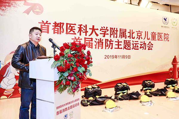 在活动开幕式上,李方亮处长对北京儿童医院消防安全管理工作给予高度肯定,同时他表示举办消防主题运动会,既是对“消防安全与生产安全”在宣传形式上的传承与创新,又是对医务工作者消防安全技能的一次“大练兵”,对进一步提高职工消防安全意识,增强灾害逃生、自救互救能力,降低火灾危害和损失具有十分重要的意义。