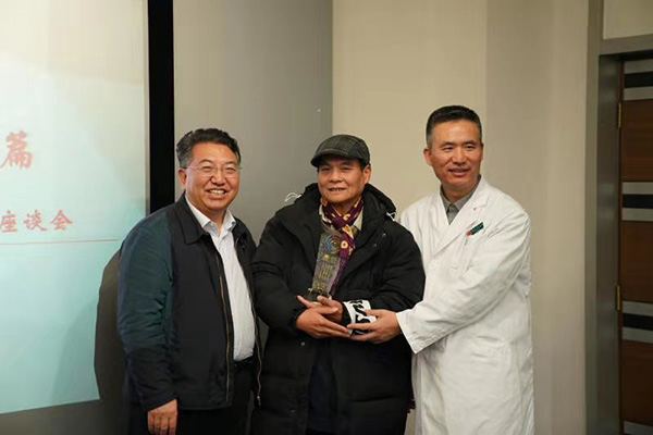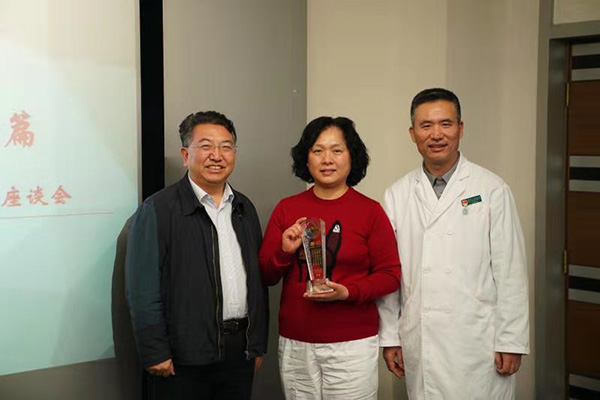 在座谈会的最后由王天有书记、丁枭伟副书记、王爱华主席为15名到龄退休职工分别颁发了带有我院院标、院训及对退休职工美好祝福的纪念奖杯,并在‘公慈勤和’的院训下拍摄了合影留念,为此次座谈会画下了完美的句点。