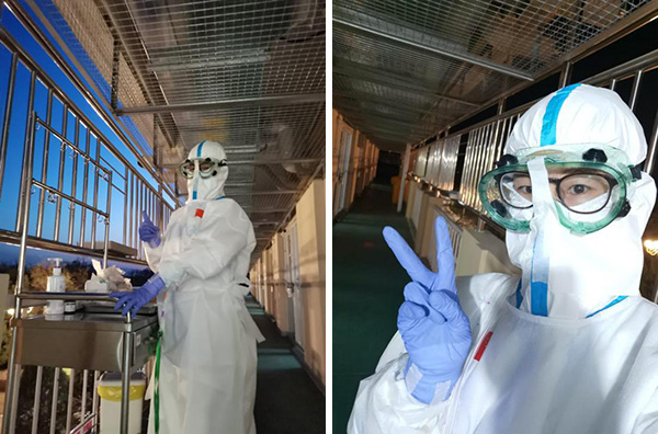 我被分配到新建病区2-2,科室有27个人,我们都来自不同的医院,但是我们拥有同一个梦想“抗击疫情,平安回家”。当时我们还没有正式接收待筛查人员,我和同事们齐心协力做着准备工作,从每个垃圾桶的摆放位置,每一个水龙头是否正常出水,到每一个房间的电话和WiFi是否正常运行,我们不放过每一个细节,就是想让待筛查人员能够住的舒心。