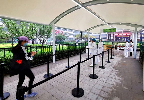 7月12日起,北京儿童医院增设统一安检入口,患者从医院东门进入后,经严格安检、预检筛查方可进入院区。