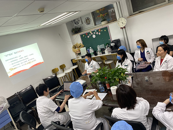 随后,李莉书记对眼科学科党支部2021年上半年工作进行总结报告,并通报了党支部委员会检视问题情况。眼科学科党支部始终坚持把党的政治建设、理论学习放在首位,在建党100周年的重要时刻,积极通过开展党日活动、党小组学习、学习强国线上学习等形式组织开展系列党史、院史学习活动。支部书记于6月15日讲授题为《学百年党史,践医学使命》的党课;积极参加医院党史学习教育知识竞赛,取得一等奖的好成绩,支部党员李嘉荣获最佳风采奖;支部带领科室全体党员、入党积极分子、团员等共同参与“我为群众办实事”活动,举办系列义诊;参加多个媒体科普宣传、公益活动,包括“全国爱眼日”系列科普宣教及义诊活动、“爱目行动”第7季——走进学校和中国儿童健康扶贫计划青海行、儿童眼健康“启明行动”主题宣传活动等。在日常管理中,认真执行贯彻民主集中制,加强意识形态工作,保质保量完成支部党员发展及转正任务。在党风廉政建设方面,支部带领所属科室开展多种形式警示教育,推进廉洁文化建设。在文化建设方面,积极组织学习医院先进典型人物事迹,参加首届“福棠杯”健康科普大赛并有多位同志获奖。