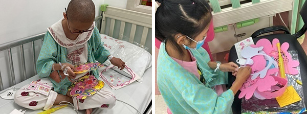 最后,患儿们在社工老师的指导下,共同制作出“彩绘手指签”。有的患儿还将制作好的成品灯笼,赠送给病房的医护人员,感谢医护人员的辛苦付出,真诚祝愿医护人员及家人中秋快乐。