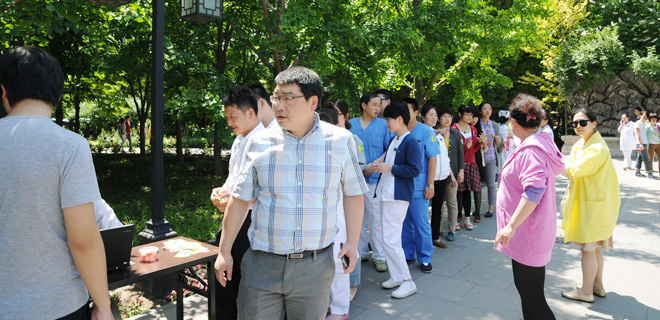 2014年5月12-16日,院工会在月坛公园举办了2014年北京儿童医院健步走活动。倪院长、沈书记、穆院长等院领导与全院2400余名职工参加了活动。
