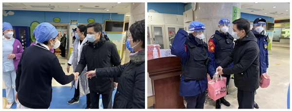 上午10:30,市医院管理中心二级巡视员徐长顺一行来到北京儿童医院,在副院长赵娟、工会主席王爱华和相关部门负责人的陪同下,亲切慰问了坚守在急诊一线的工作人员,感谢大家的辛勤付出和无私奉献,并代表市医管中心给北京儿童医院全体职工送上新春问候和节日祝福。徐长顺同志还走进诊室,鼓励就诊患儿早日战胜疾病,并向患儿和家长致以新春祝福。